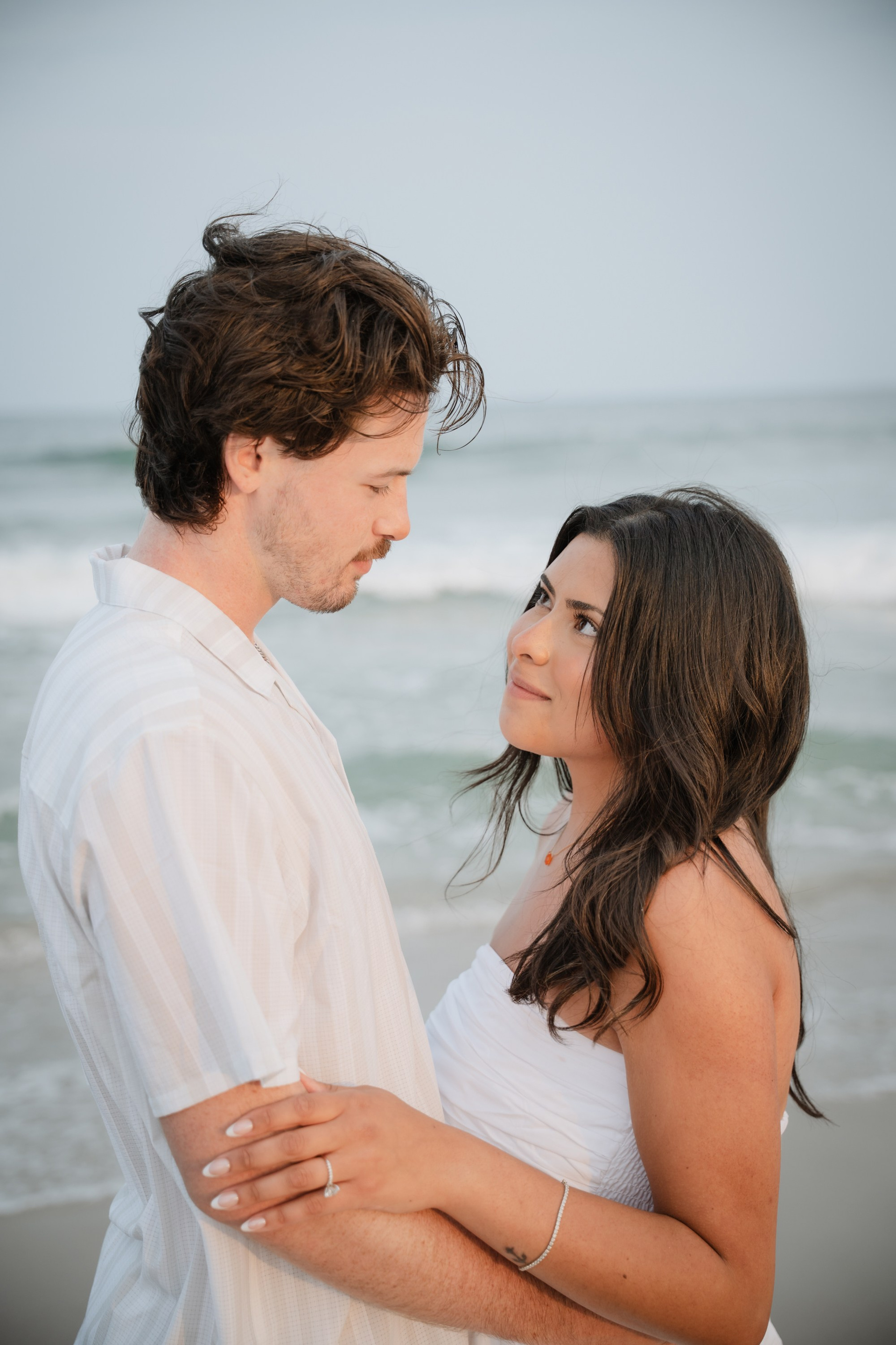 Candid photos of a couple on the beach